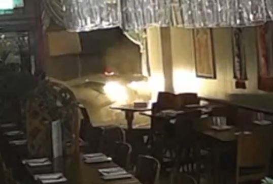 Images shared by the restaurant show two cars outside the premises, one of them having broken a large front window.