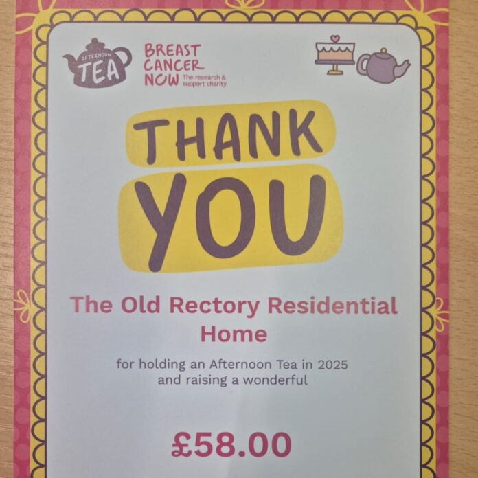 The home proudly announced a total of £58 raised for Breast Cancer Now and £54 for Macmillan Cancer Support, thanks to the generosity of everyone who attended, donated, baked, or simply shared a cup of tea in support of the cause.