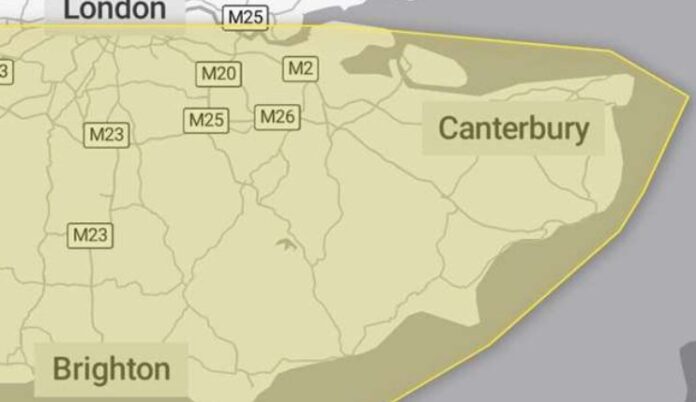The Met Office notice came into force at midnight and will last until midday. The whole of Kent is covered, along with parts of London and Sussex.